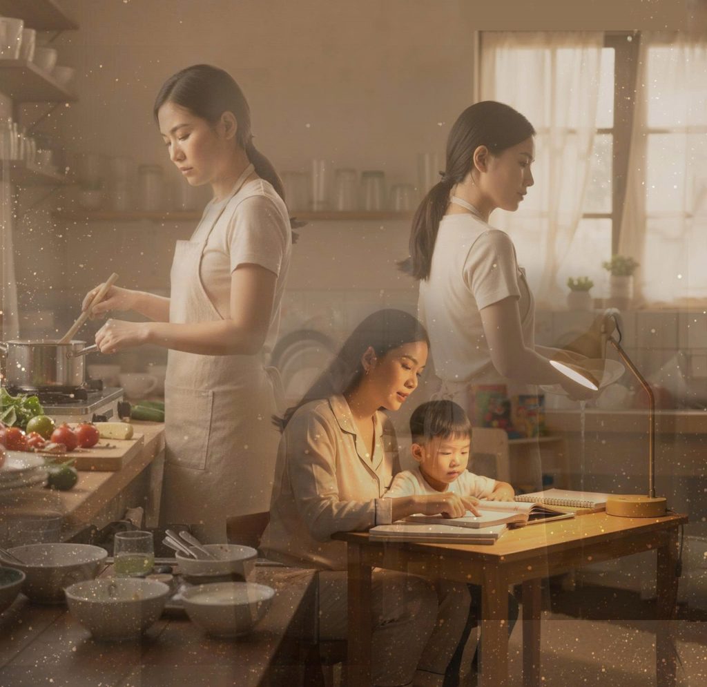 Tôi nhìn vào phòng, nơi em đang ngủ thiếp đi vì mệt. Vẫn là em đó, nhưng vai đã gầy đi, khoé mắt đã hằn vài nếp nhăn chẳng biết từ bao giờ. Đôi tay từng mềm mại nay đã chai sần vì lo toan gia đình, vì chăm con. Tôi bất giác thấy tim mình chợt nhói.